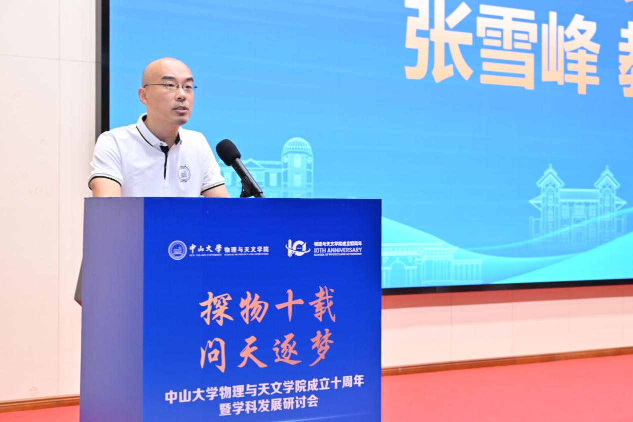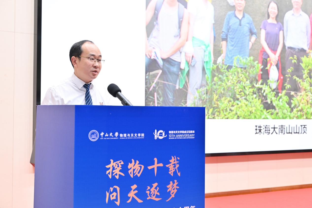 十年很短,在宇宙的尺度里不及一瞬;十年很长,在物天人的奋斗中写满华章。回首十年奋斗路,学院取得的每一份成就,都凝聚着各方的深情厚谊与鼎力支持。下一个十年,中山大学物理与天文学院必将以更加坚定的信念,不忘初心,勇立潮头,探物问天,究理穷源,聚焦国家重大战略和粤港澳大湾区发展需要,为建设教育强国、推进中国式现代化作出新的更大贡献。