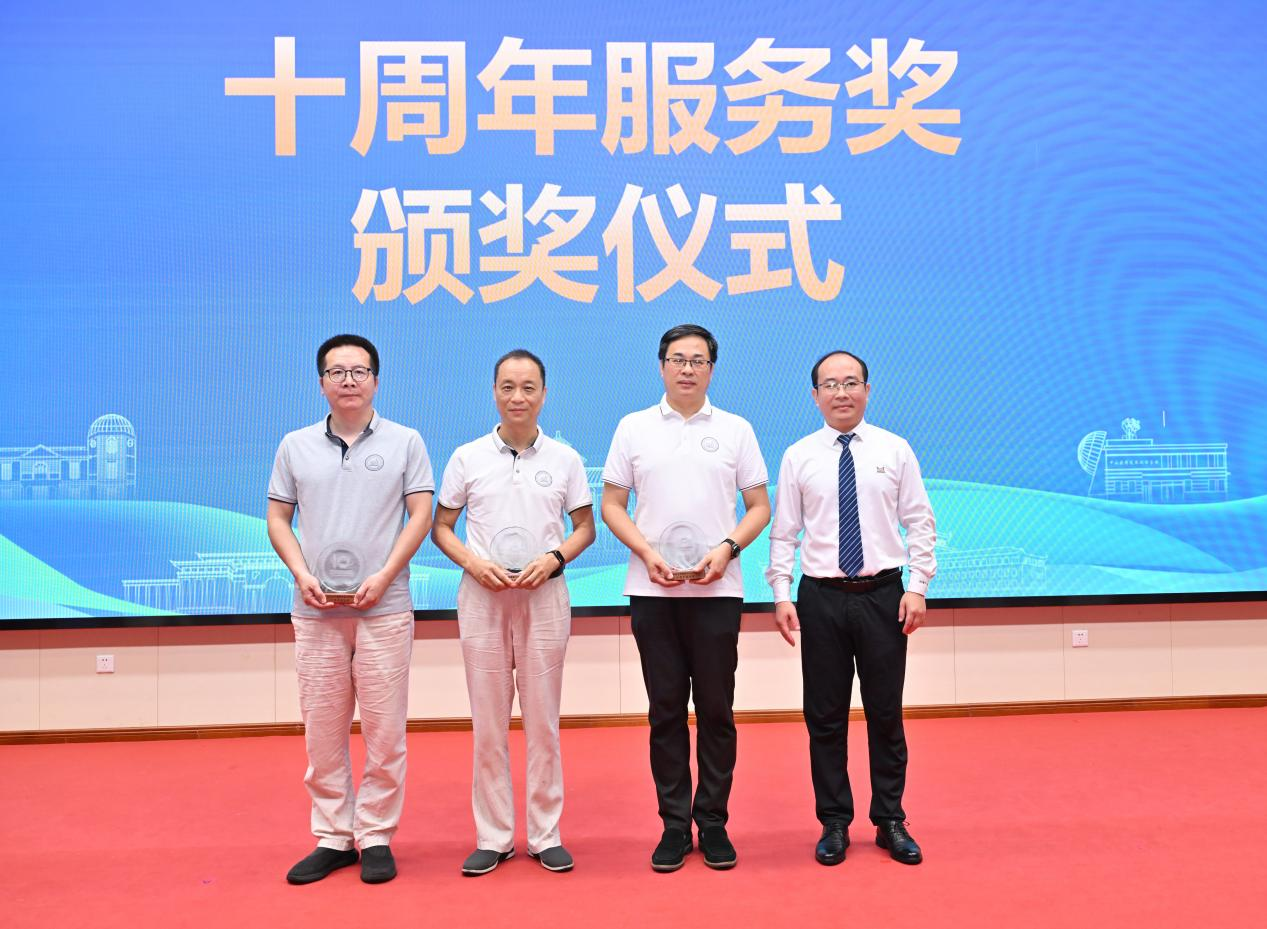 大会上,杨山清院长代表学院为自建院之初就在学院工作的教职工代表何振辉教授、林伟鹏教授和梅健伟教授颁发了 “十周年服务奖”,感谢他们十年如一日的坚守和奉献。