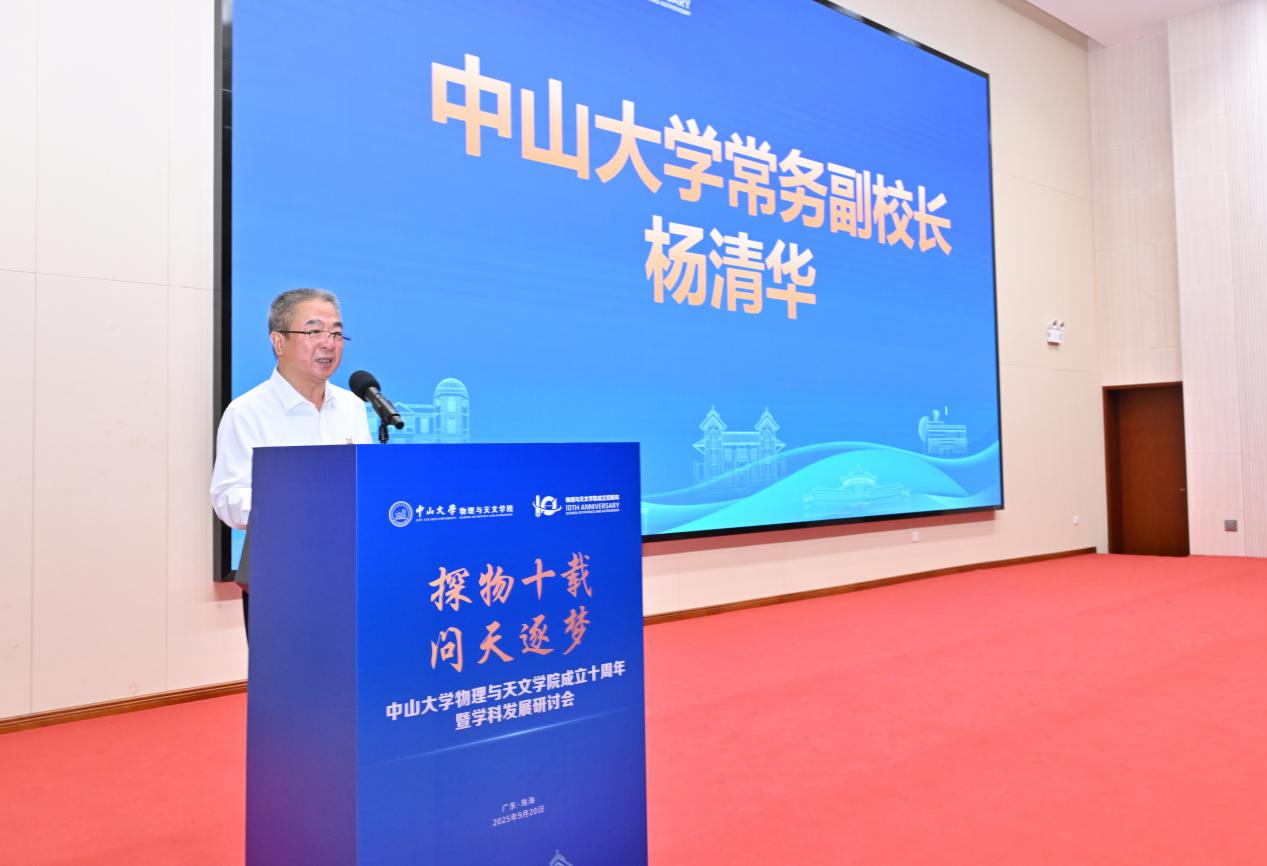 杨清华常务副校长首先代表学校对到场的嘉宾、校友、师生致以热烈的欢迎和诚挚的感谢。他充分肯定了学院在过去十年发展中取得的成就,希望学院继续传承“百年中大精神”,携手同行,为我国的教育事业和科学事业做出更大的贡献。对学院未来发展提出了殷切期待和明确要求:一是坚守初心,勇担使命。以国家需求为导向,聚焦“卡脖子”难题,为科技自立自强贡献“中大智慧”。二是深化改革,激发活力。持续推进教育改革发展、科技创新和人才培养,打造国际一流的科研团队和育人平台。三是立德树人,铸魂育人。坚持为党育人、为国育才,培养更多心怀“国之大者”、兼具科学精神与人文情怀的栋梁之材。