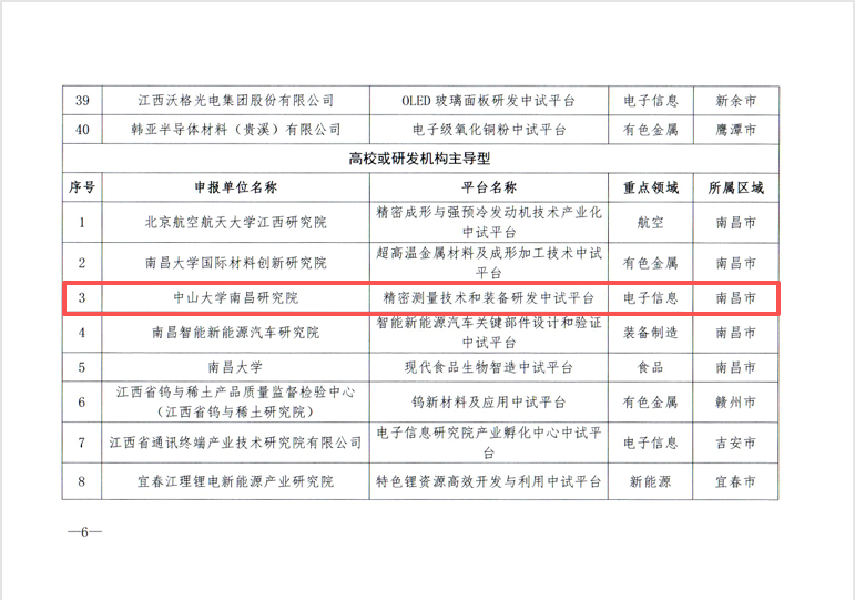 2025年12月3日,江西省工业和信息化厅发布《2025年江西省制造业中试平台培育名单的通知》,中山大学南昌研究院精密测量技术和装备研发中试平台成功入选“2025年江西省制造业中试平台”。